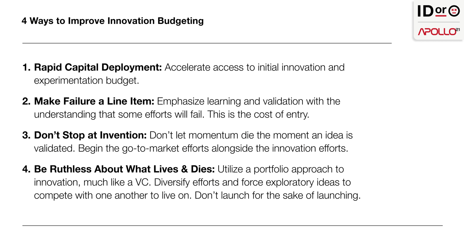 If your budget doesn’t expect failure, you’re not going to be “doing” innovation for long. Failure isn’t a surprise. Failure is a signal.