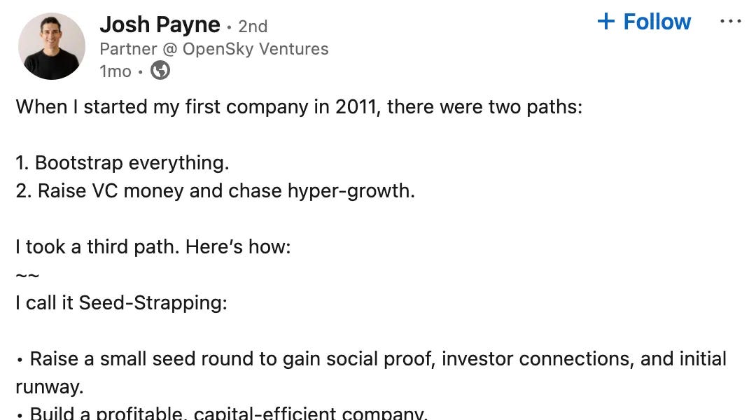 Bootstrapping isn't a fallback. It’s a measure of survival potential. And it's one of the few things that still signals founder quality in a noisy, capital constrained market.