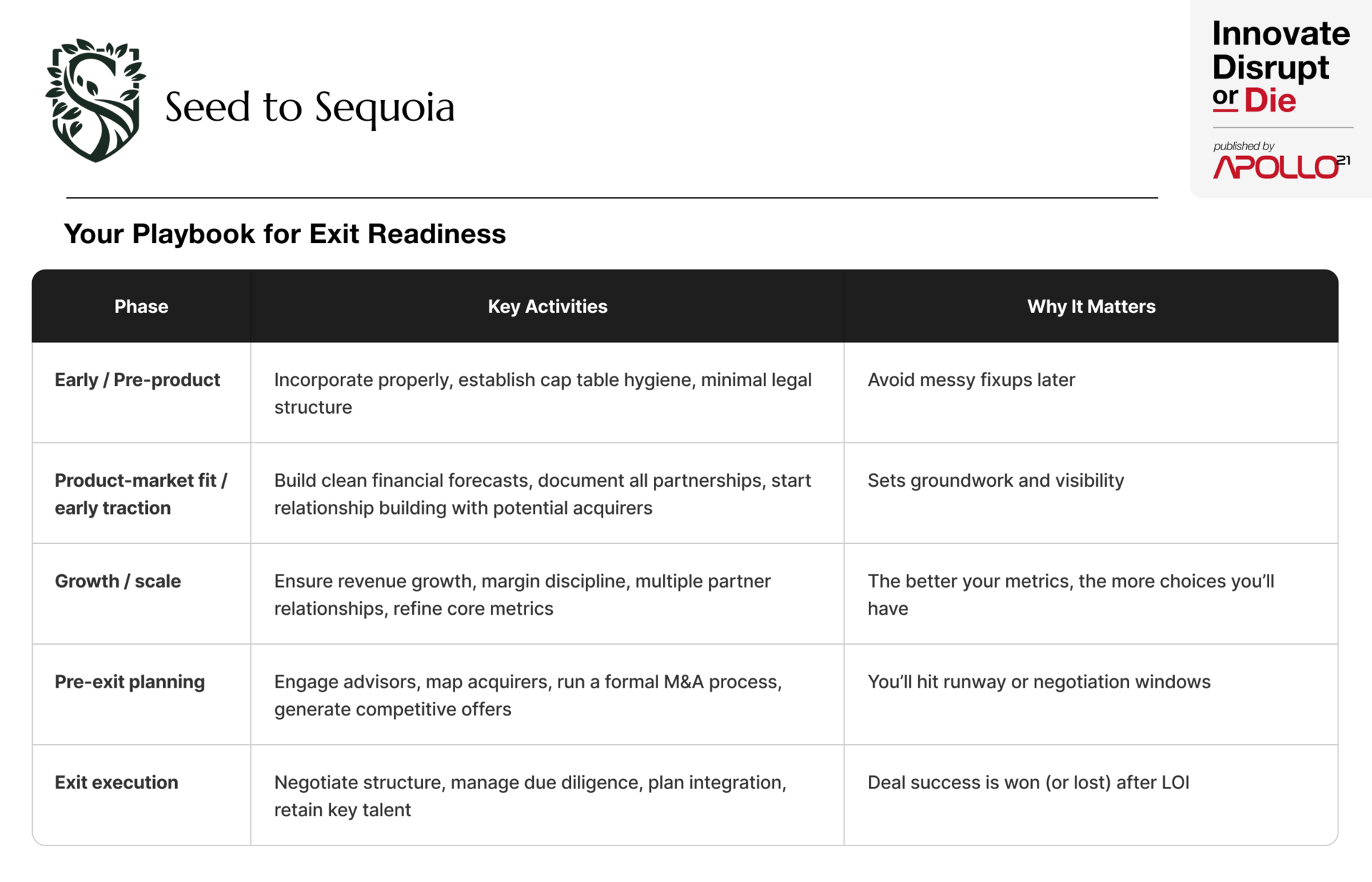 Exits are rarely magical. They are built, piece by piece, over time. The founders who walk away with the best outcomes are the ones who treat acquisition readiness as part of the core playbook, not as a someday side quest.